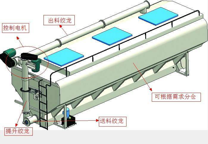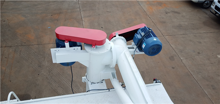 上裝罐體:罐體材質(zhì)采用4mm優(yōu)質(zhì)碳鋼板,整車3條絞龍,由3個5.5KW電機380V外接電源帶動頂部絞龍用液壓控制舉升,可左右旋轉(zhuǎn)180°。罐體內(nèi)分為四個倉,可以獨立控制各分倉卸料順序和速度。(備注:此報價為標(biāo)配,國產(chǎn)電機,德力西電柜)